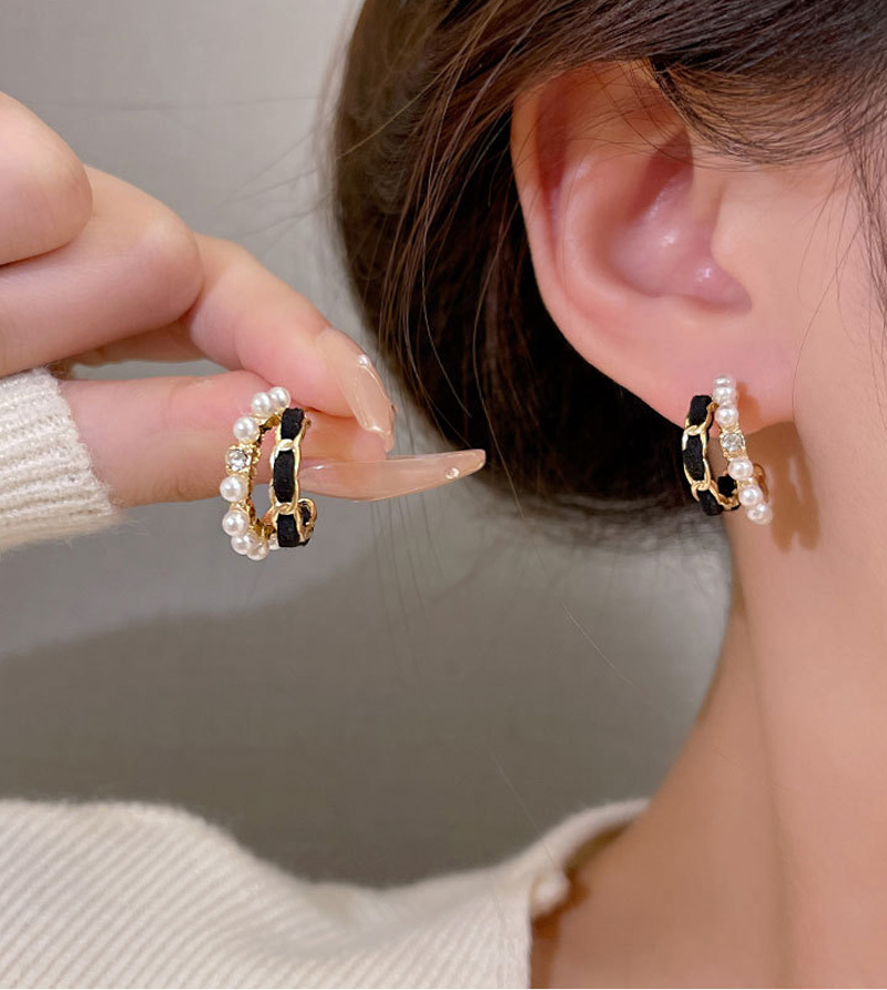 🩷각인펜증정🩷 925은침 블랙 벨벳 진주 레이어드 귀걸이