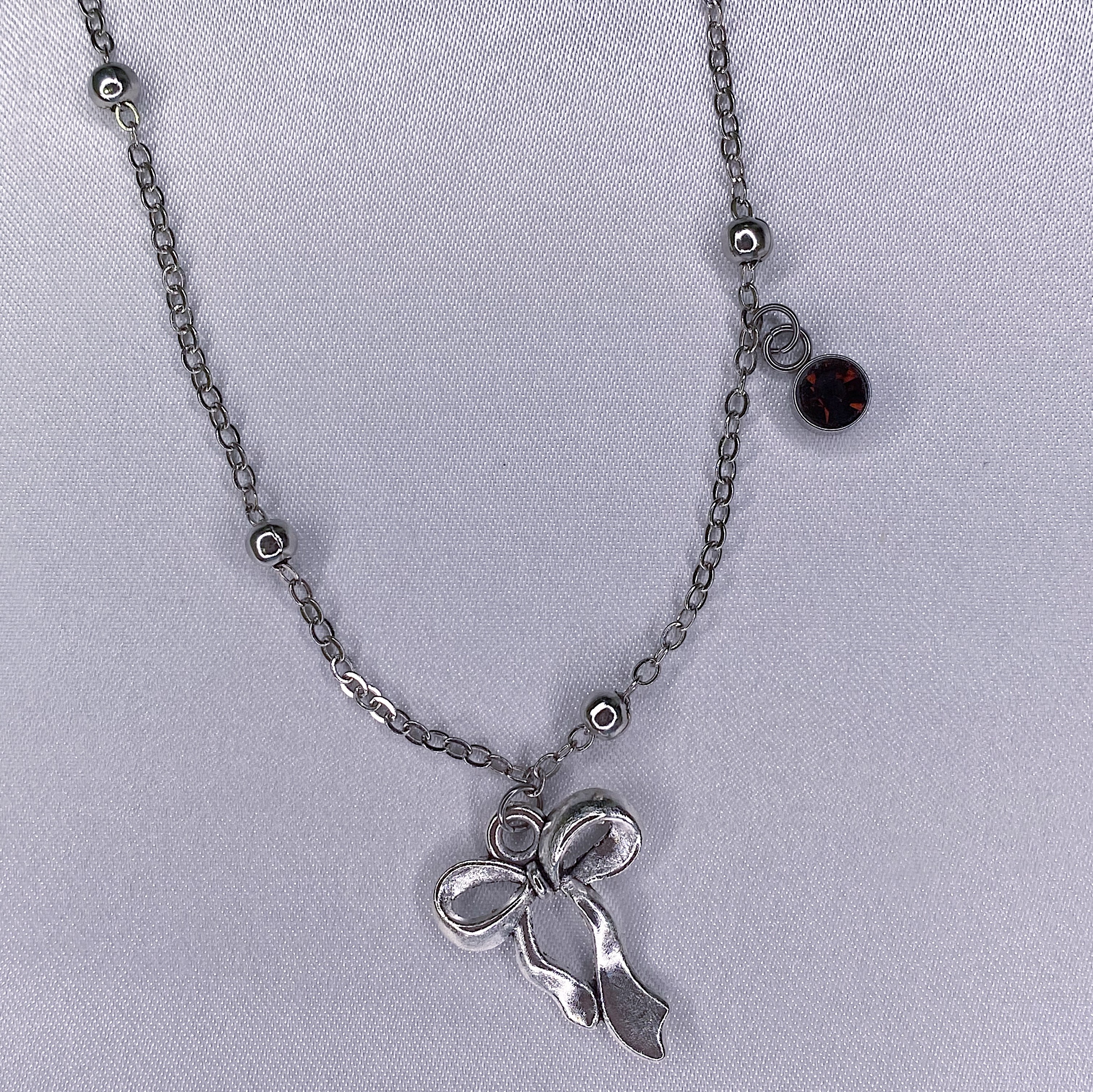 [자체제작]리본 자수정 포인트 y2k목걸이 / 리본목걸이 써지컬스틸 리본포인트 레드큐빅 탄생석 원석 리본팬던트 유니크 힙 하이틴 키치 러블리 발레코어 바비코어 미니멀 핸드메이드