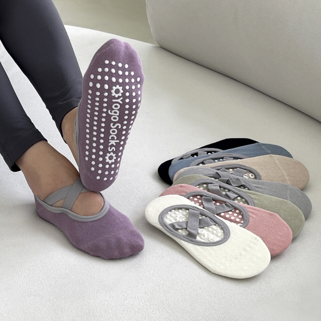 [1+1] 크로스 밴딩 스포츠 필라테스 논슬립 홈트 요가 롱 골지 양말 8color
