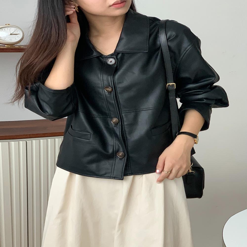 여자 레더 3컬러 가을 박스 슬림핏 가죽 자켓