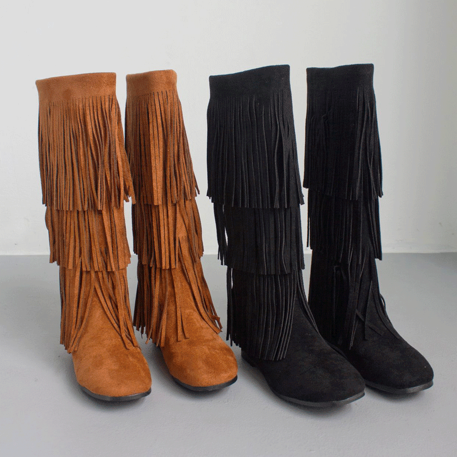 [유니크!/빈티지룩🍂] 브릴레 스웨이드 태슬 빈티지 롱부츠 (2color/1cm)