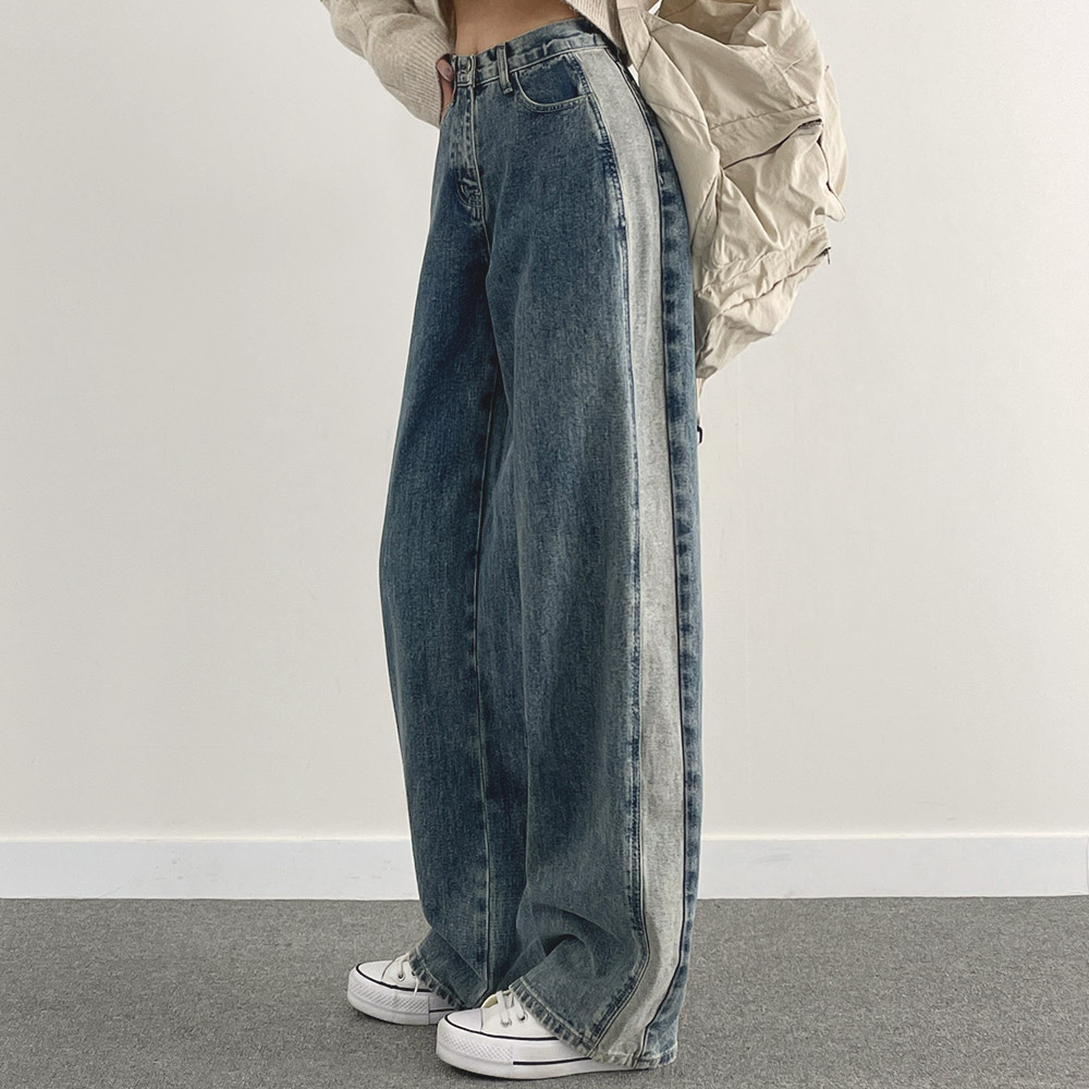 [숏&롱] 사이드라인 일자 와이드 청바지 (1color)