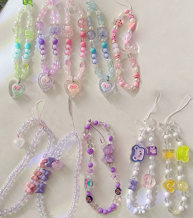 [10종] 키치팡 비즈 핸드폰 스트랩 파스텔 폰스트랩 핸드폰줄 no.1543