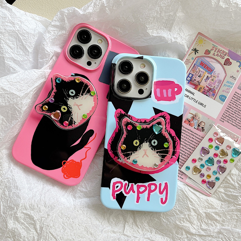 고양이 캐릭터 그립톡 실리콘 범퍼 아이폰14 아이폰13 아이폰12 프로 맥스 큐빅 스티커 폰 꾸미기 세트 귀여운 케이스