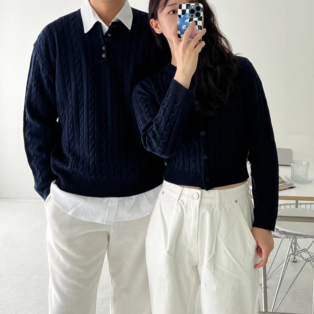 가을 커플룩 커플시밀러룩 단추 꽈배기 니트 가디건