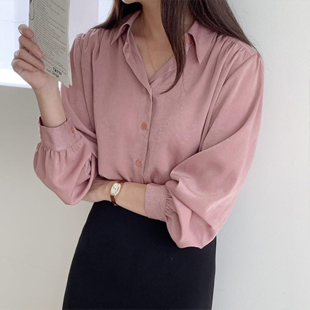 여자 직장인 여름 가을 출근룩 카라넥 셔링 카라넥 블라우스