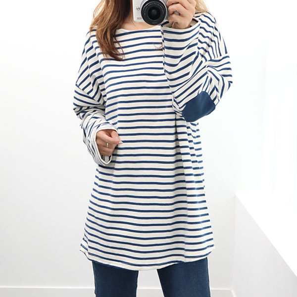 여성 러블리 스트라이프 롱티 가을 줄무늬 긴팔 단갈 루즈핏 라운드 77 면 티셔츠