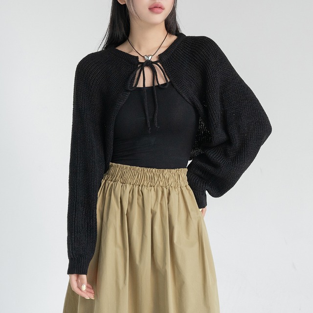 빅사이즈 55-99 티커 리본 크롭 볼레로 니트 가디건