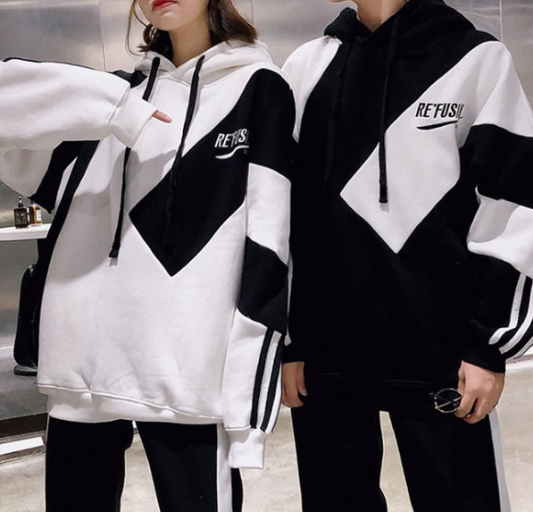 [2컬러/2사이즈] 화이트블랙후드티 남여공용 남성후드티 여성후드티 남자후드티 여자후드티 커플후드티 캐주얼후드키 스트릿 힙한 긴팔후드티 봄 가을 후드 후드티