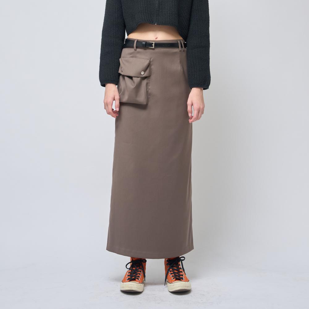 320쇼룸 1카고 포켓 롱 스커트 카키브라운