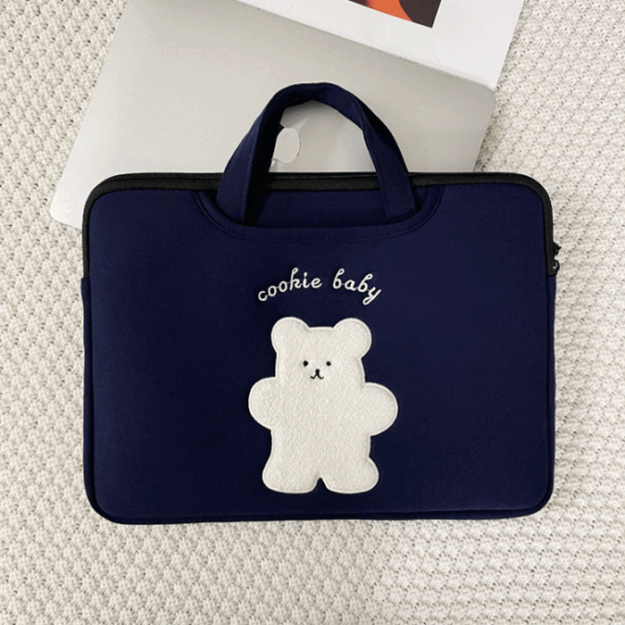 [당일발송] 15인치 15.6인치 16인치 블루 곰돌이 손잡이 귀여운 노트북 파우치 가방 맥북 엘지그램 삼성 갤럭시북