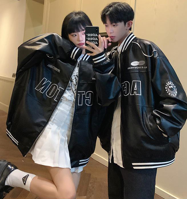 커플룩 [일반/누빔] 커플룩 남녀공용 가죽 야구 점퍼