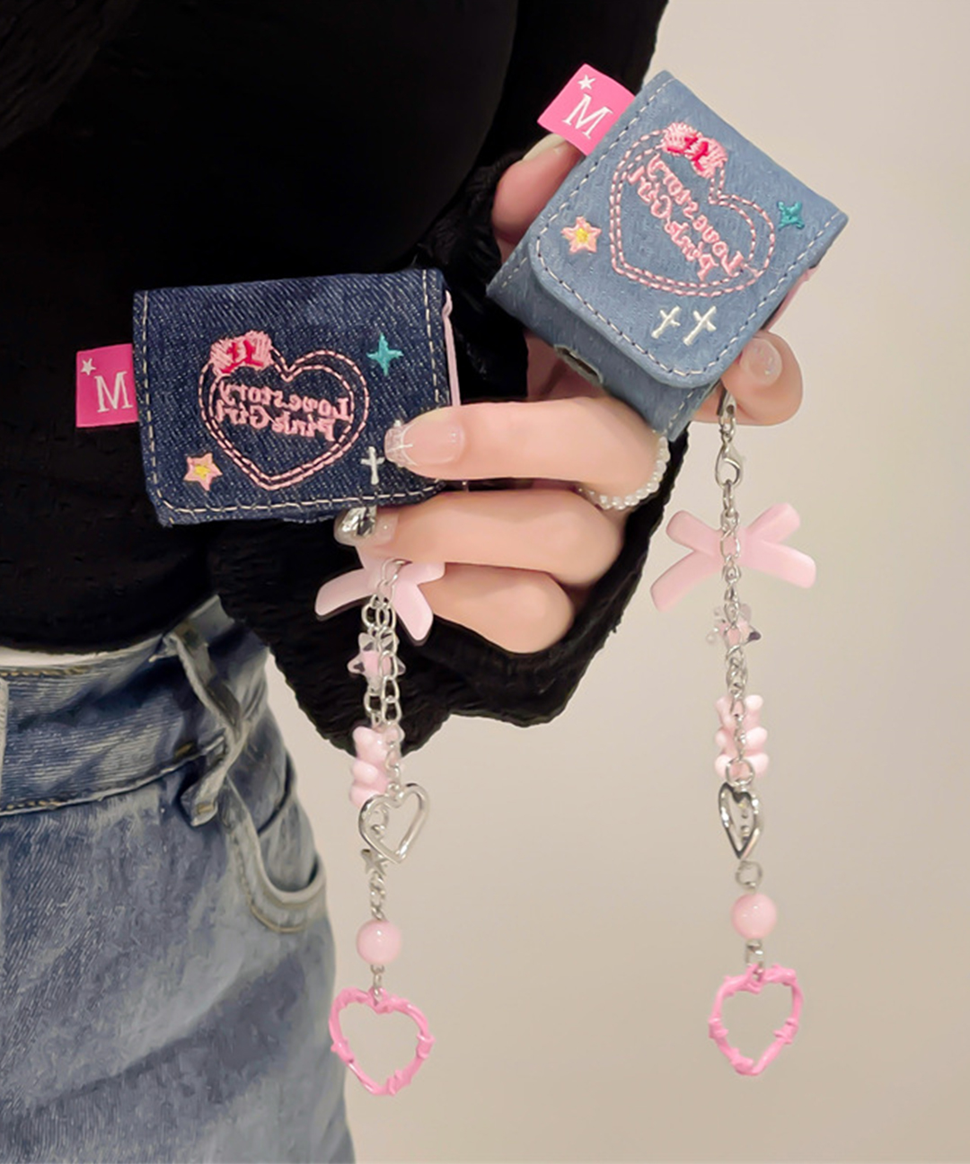 에어팟 핑크걸 데님 가방 핸드폰줄 스트랩 키링 Y2K 특이한 힙 유니크 키치 하이틴 귀여운 심플 커플 우정 친구 선물 이어폰 애플 케이스 에어팟케이스 1세대 2세대 프로 3세대