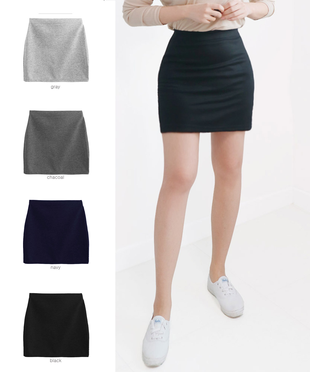 허리밴딩 무지 스판 3부 H라인 미니 스커트