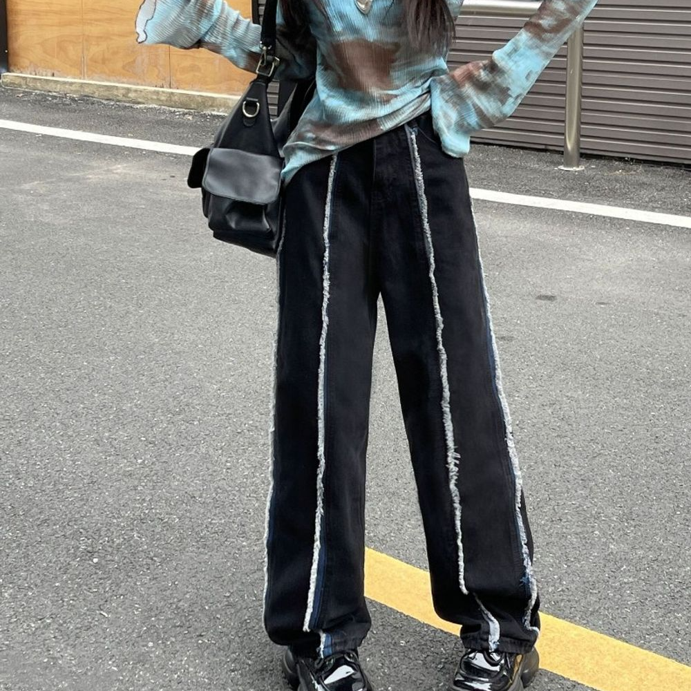 [힙룩/단독디자인/배색와이드]루즈핏 와이드 팬츠 핀턱 데님 하이웨스트 가을신상