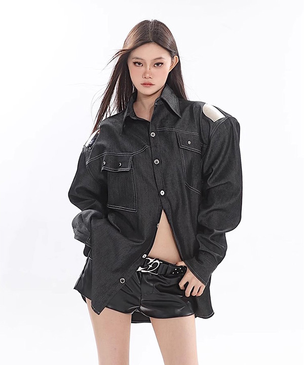 무료배송 생지포켓 크롬오버핏셔츠 (블랙)