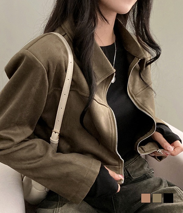 [무료배송] 컴오버폴링, 부드러운 스웨이드 카라 크롭 자켓