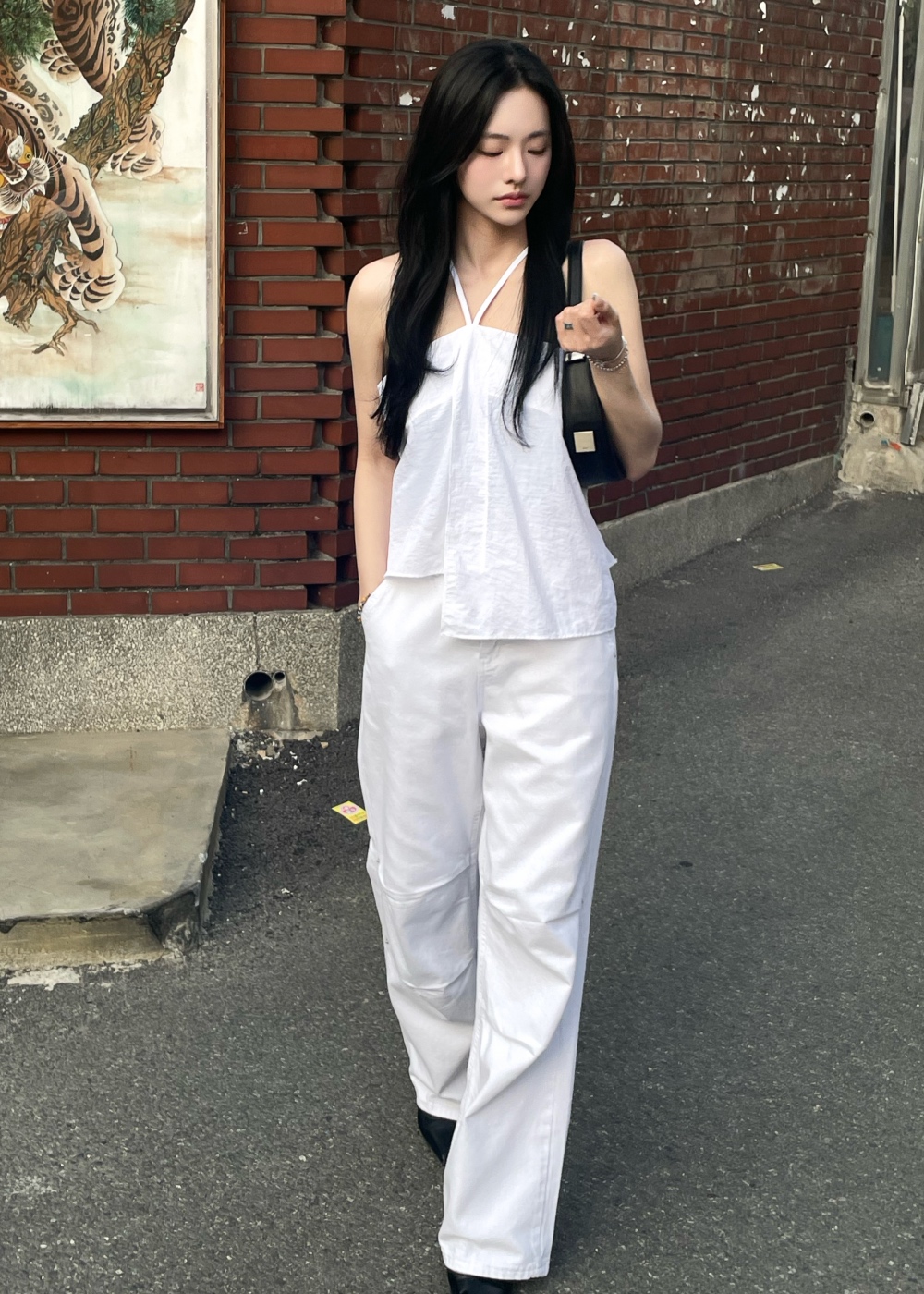 랜스 무릎 턱 포인트 코튼 팬츠