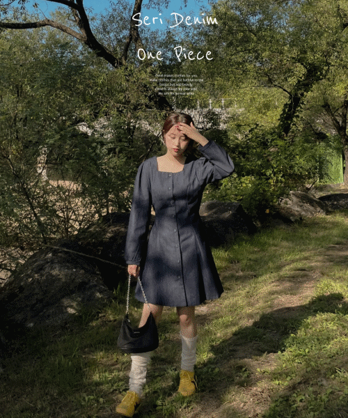 [한정수량 특가!][키작녀 강추] 세리 데님 미니 원피스 스퀘어넥 벌룬소매 데이트룩 시밀러룩 2colors