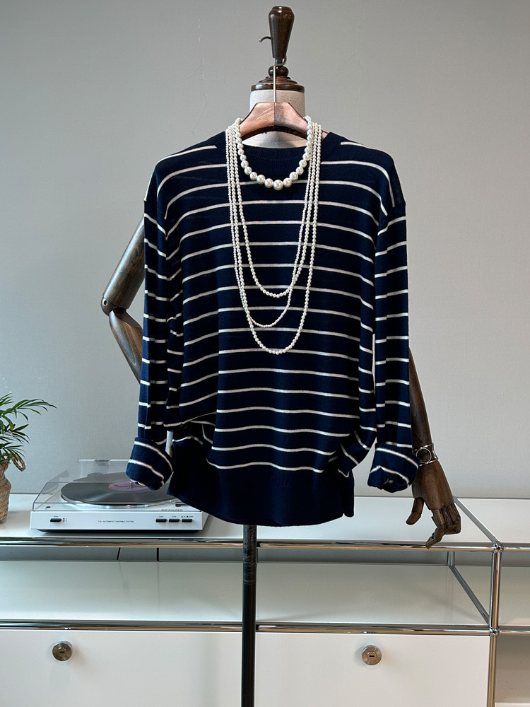 얇고 부드러운 울 스트라이프 니트티 4컬러