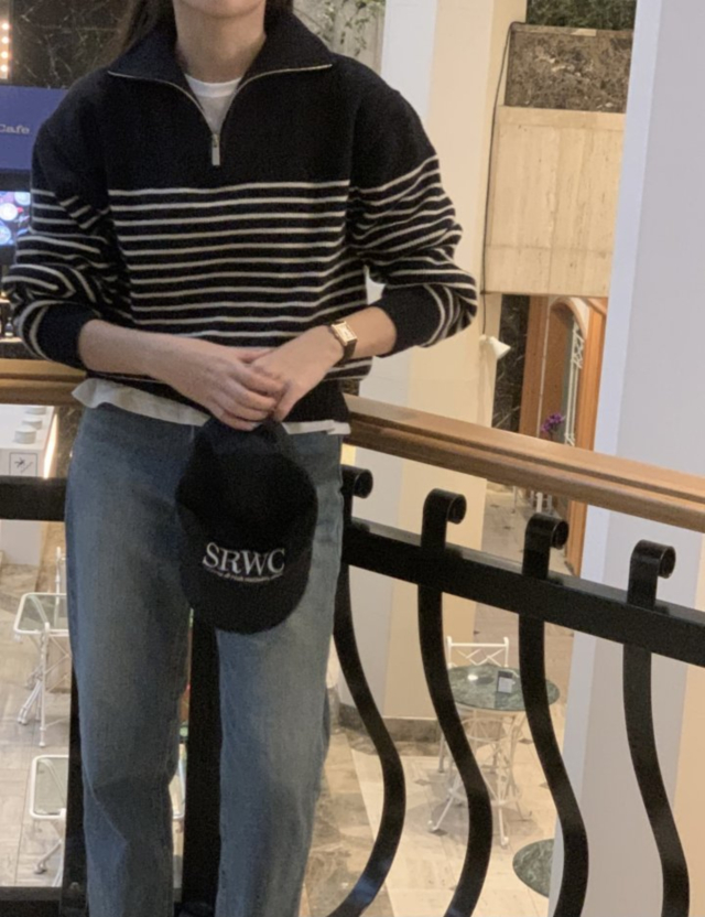 디스이즈 단가라 반 집업 울 스트라이프 카라 니트