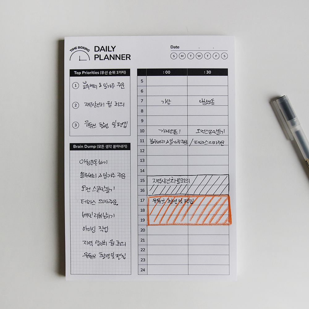 타임박스 플래너 타임 트래커 [일론머스크 계획표 A5 100매 투두리스트 하루 시간 별 일일 스케쥴 데일리 리포트 노트 시간관리 스케줄러]