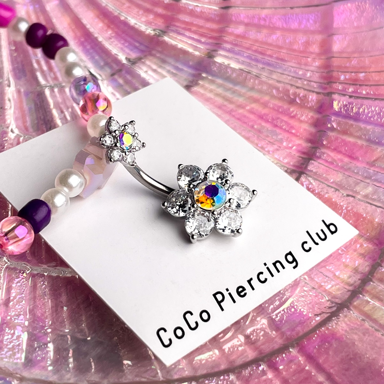 [배꼽피어싱] 더블 AB플라워 큐빅 belly piercing