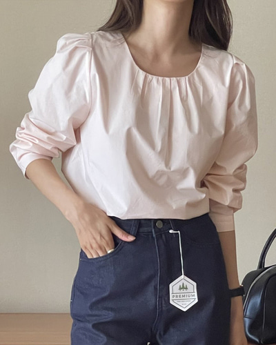 (당일)페미닌무드 벨 코튼 블라우스 세미크롭 여유핏 모임룩 데이트룩(80760)