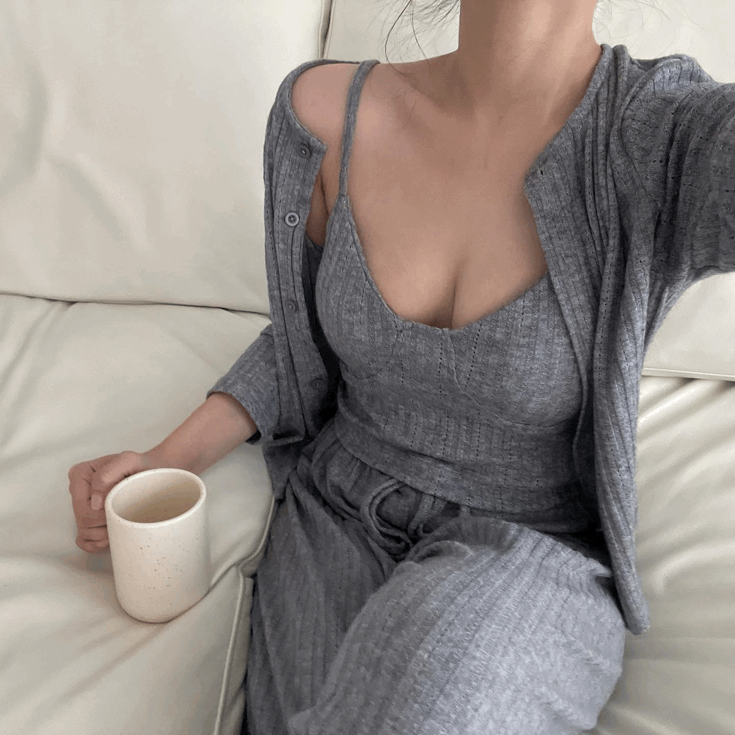 [추천] 니트 캡내장 쓰리피스 홈웨어 세트(3color)