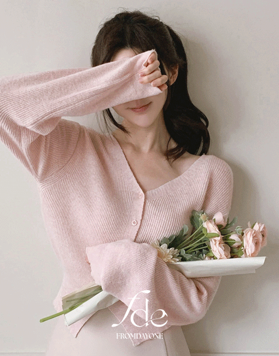 Made)소프티 브이넥 여리핏 니트가디건(세미루즈/세미크롭/트임/V넥)