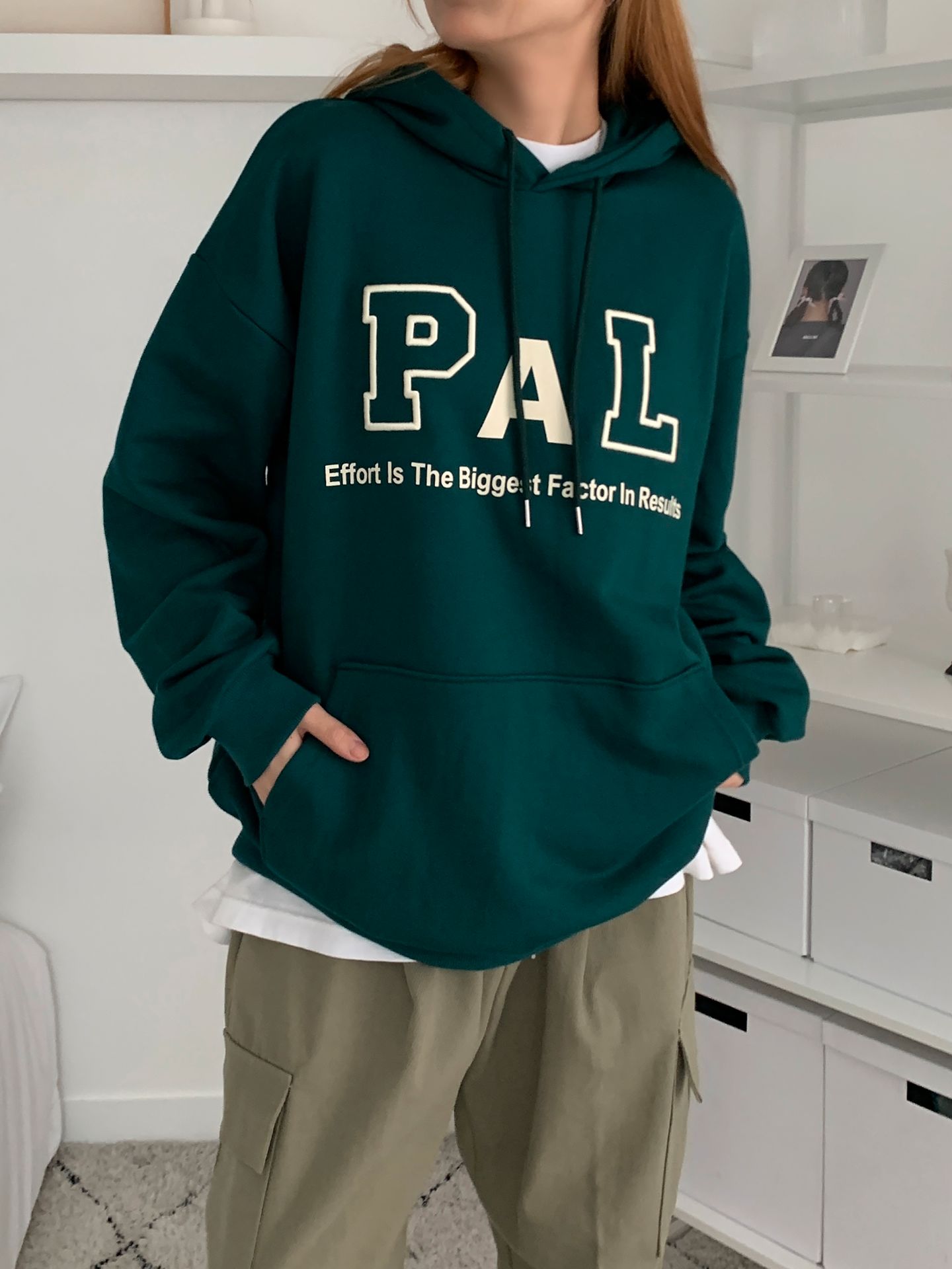 (소프트쮸리)PAL후드 (레터링 루즈핏) - 청록, 블랙