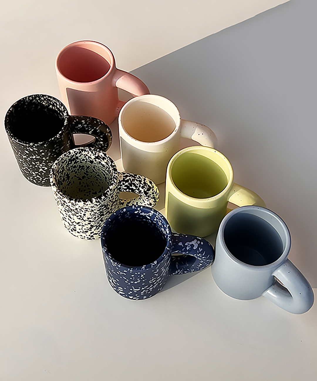 파스텔 뭉툭 머그컵 홈카페 점박이 머그 크림 블루 핑크 라임 블랙 딥블루 레몬블랙 7color
