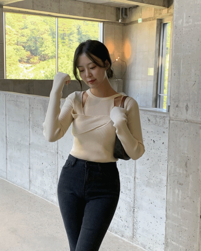 [50%세일] 베네시 꼬임 홀터넥 어깨 트임 레이어드 골지 니트 (3 color)