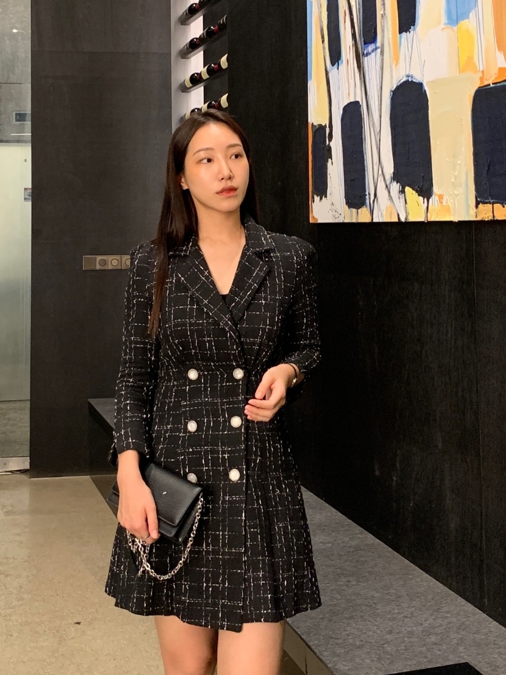 [고급] 가을하객룩 트위드원피스 데이트 상견례 2부 더블 자켓 카라 원피스 (2col)