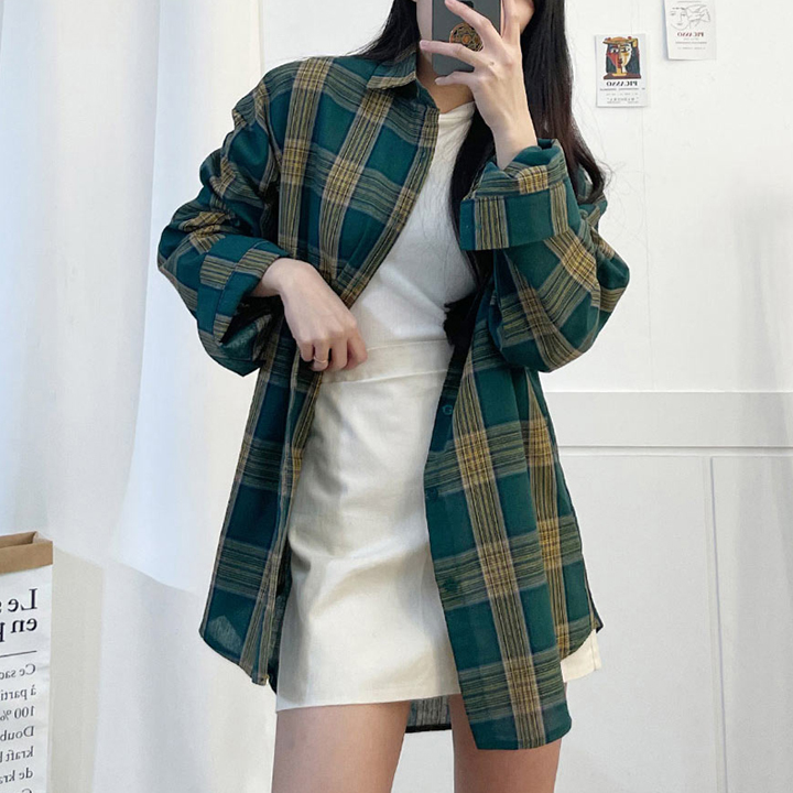 여성 박시 롱체크남방/루즈난방/봄/가을/간절기 롱남방