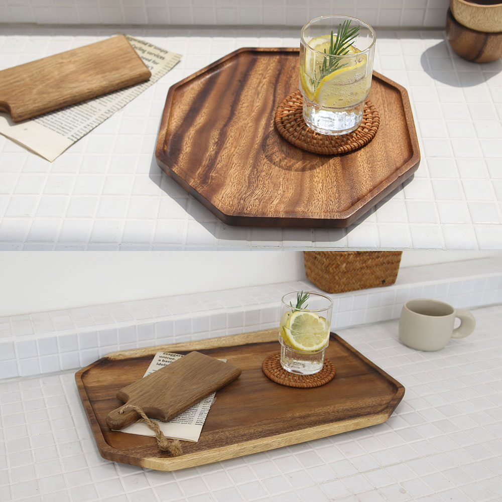 마로니 우드 원목 직트레이 팔각트레이 나무쟁반 원목쟁반 카페 홈카페 카페트레이