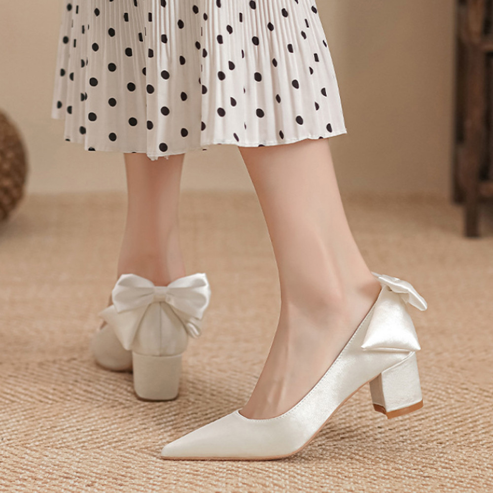 220-260 엔로아 5,7cm 리본 통굽 고급 새틴 웨딩구두 2color