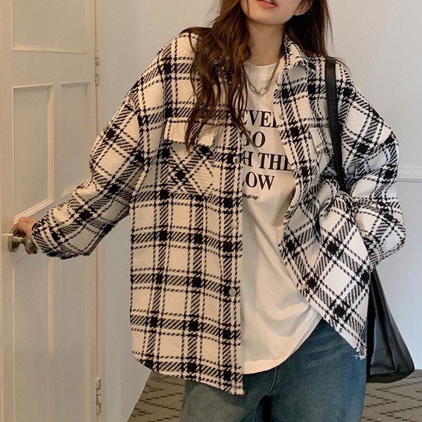 체크 오버핏 모직 셔츠 자켓 오피스룩 예쁜 코디 데일리 데이트 캐주얼 가을 봄 겨울 점퍼 재킷 세미 정장 러블리