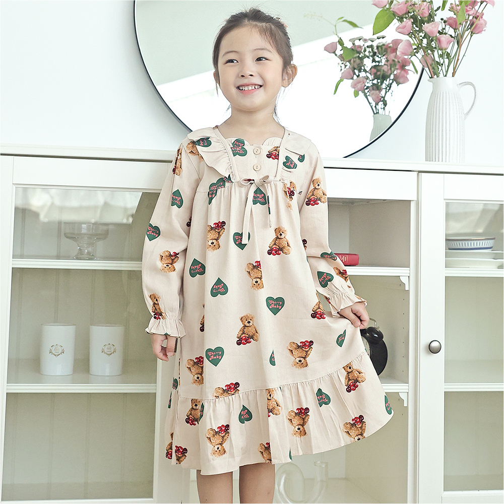 여아 원피스 잠옷 유아 아동 공주 파자마 긴팔 곰인형D(CR면)