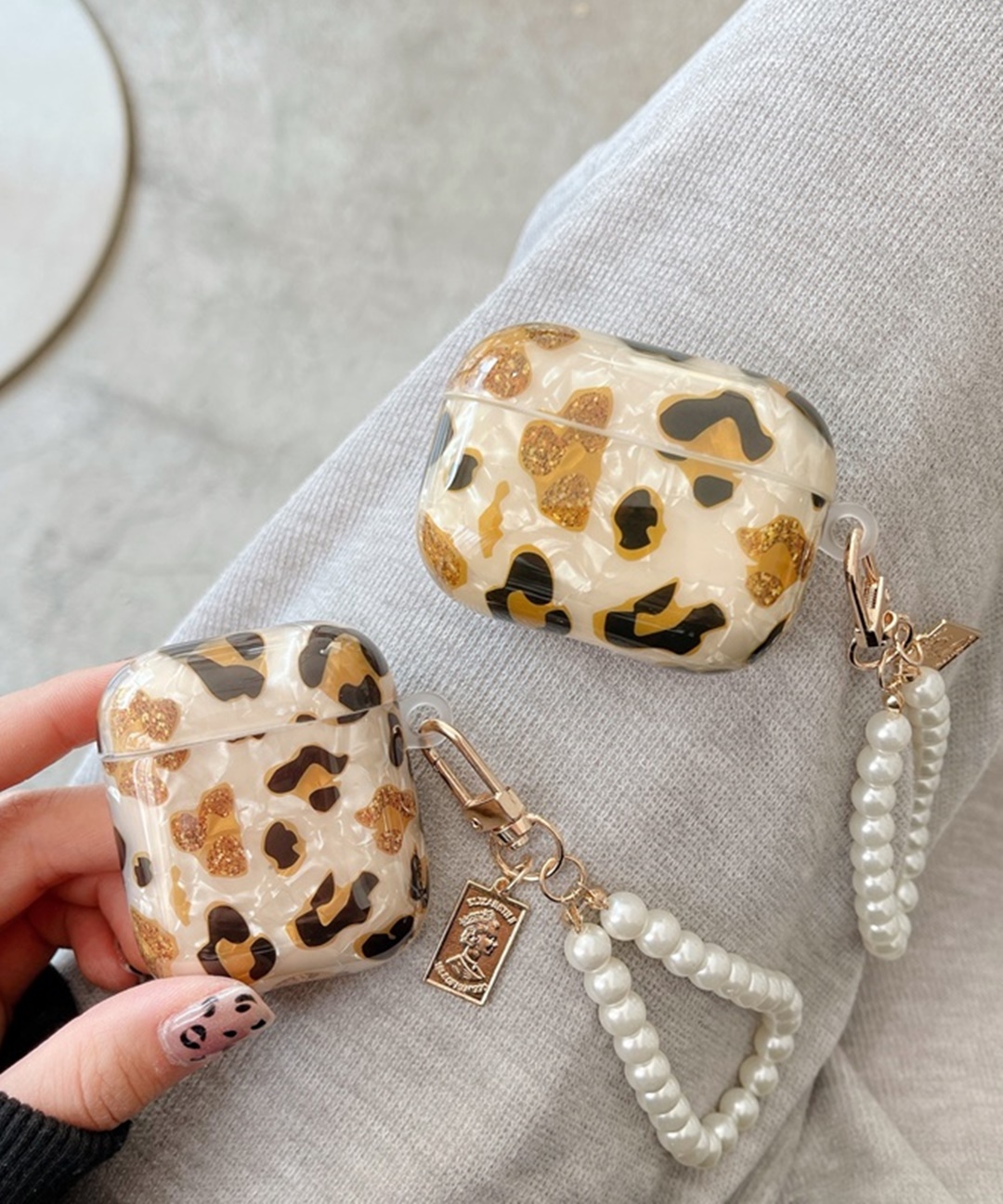 가을신상 당일출고🖤 레오파드 호피 에어팟케이스 진주 스트랩 줄 세트 철가루방지스티커 철방스 ( 에어팟 1 2 에어팟 프로 )