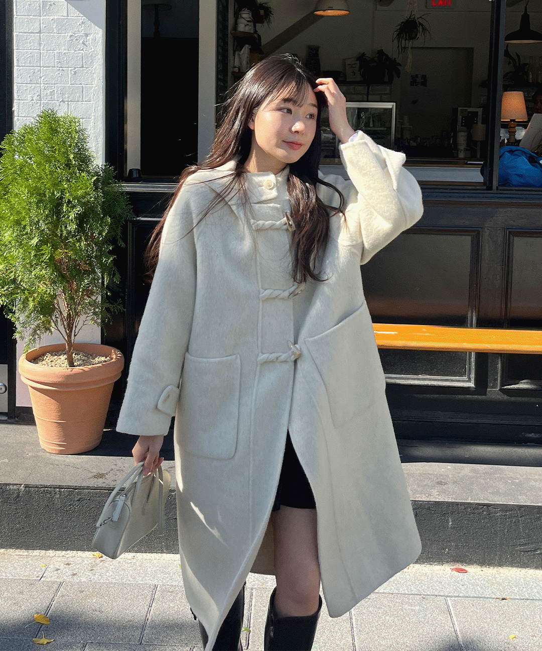[ 러블리최강 / 고퀄리티 ] 울 핸드메이드 후드 떡볶이 롱코트