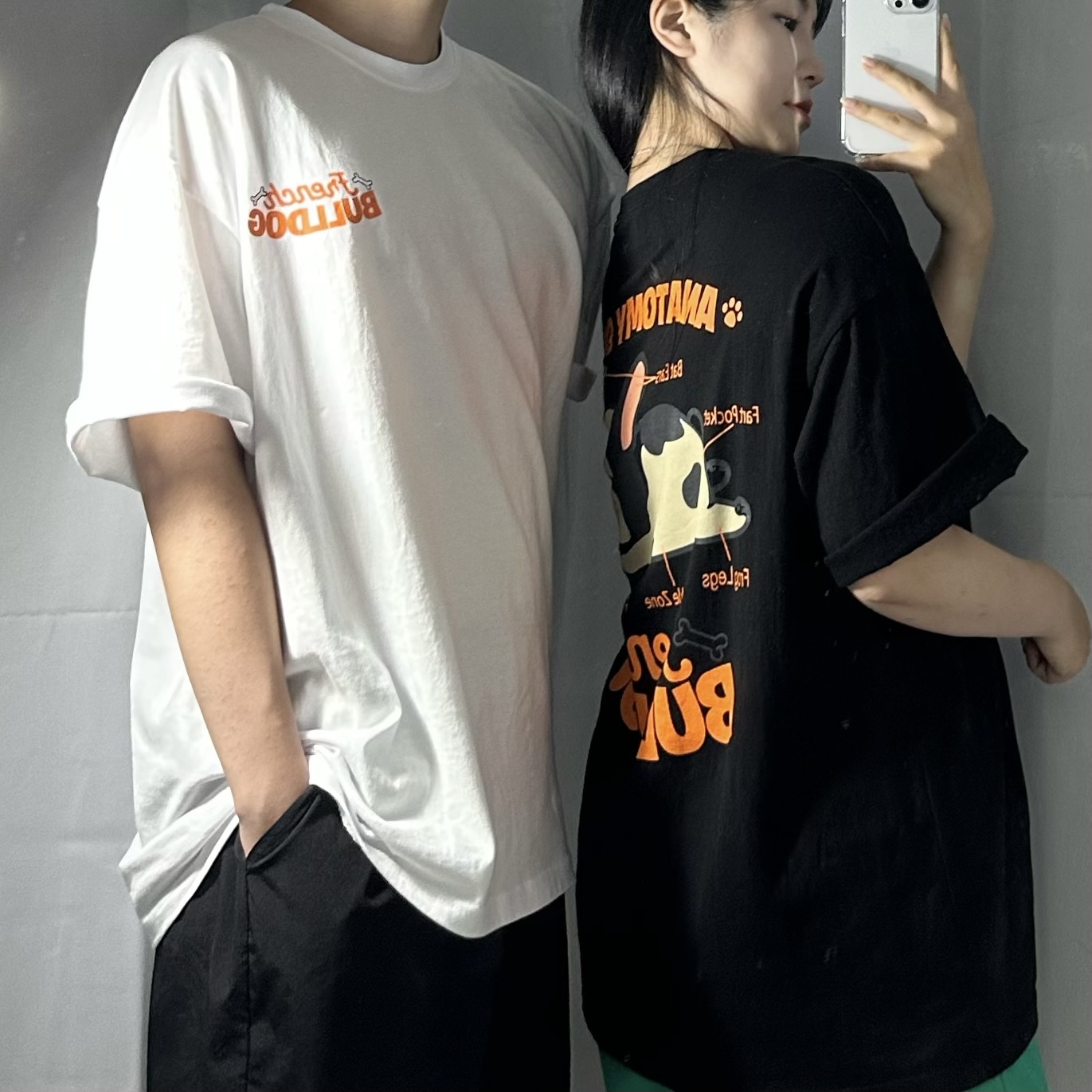 [남녀공용/커플추천] 불독티셔츠 커플티 추천 남녀공용 팔뚝살 커버 티셔츠 여름 반팔 반소매 롤업 1+1할인 하체커버