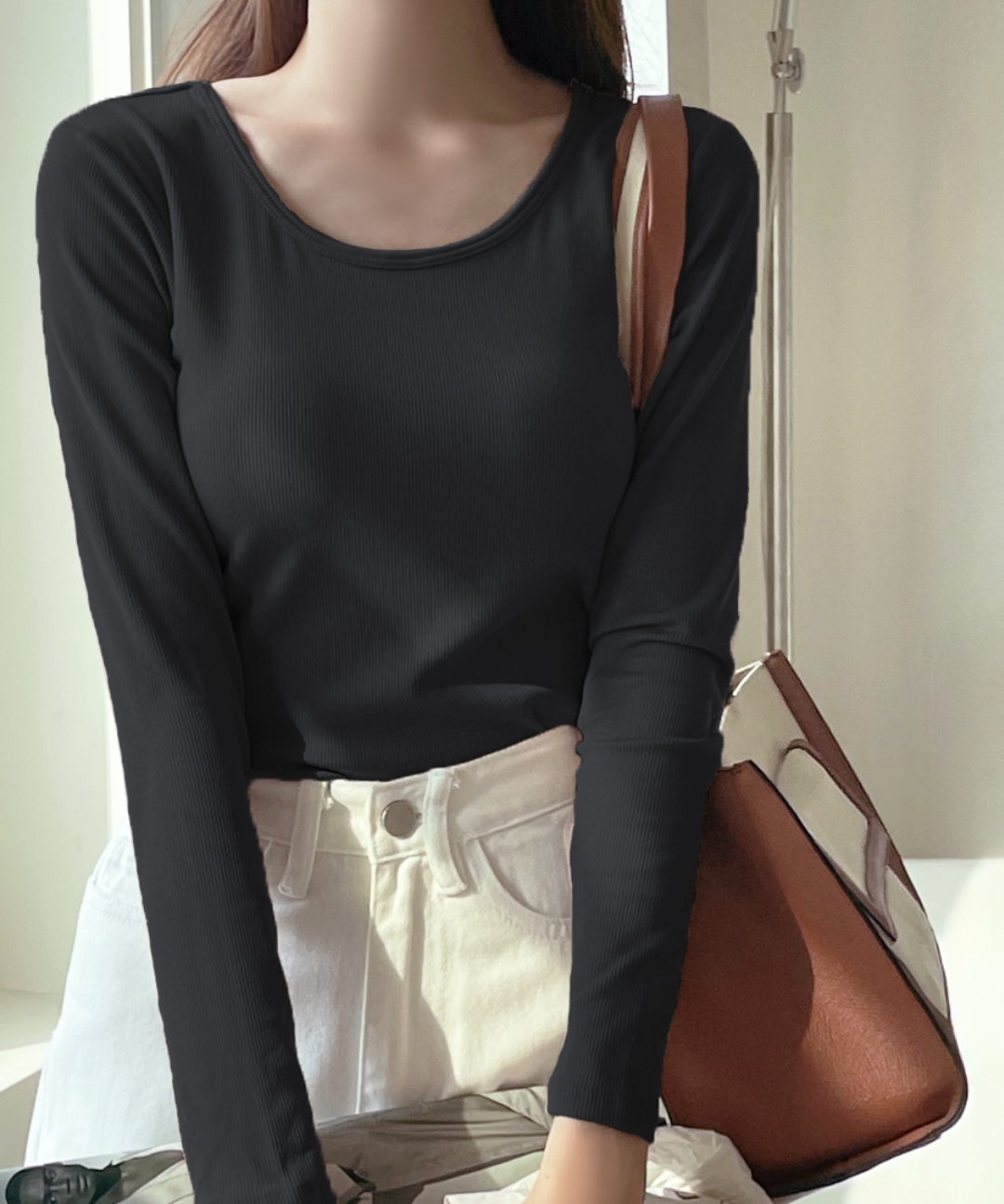 [오늘출발] 쫀쫀 골지 긴팔티 캡내장 브라캡 라운드 노브라티 R타입 티 브라탑 빅사이즈 부드러운 촉감좋은 미친촉감 봄 가을 자켓 이너