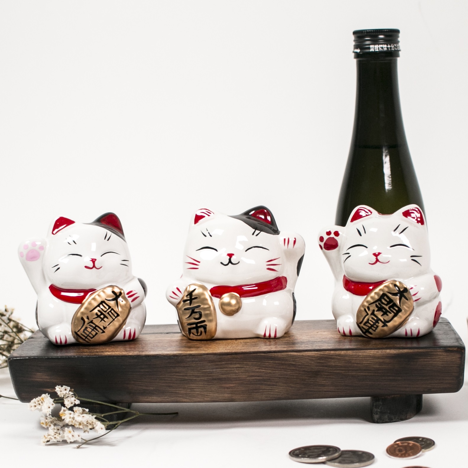 [손흔드는 일본 마네키네코 저금통] 복고양이 인형 3종세트 행운을 부르는 냥코센세
