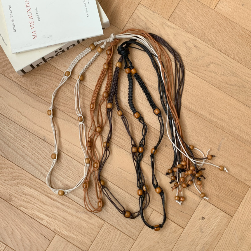 [빈티지룩/포인트템] 에스닉 매듭 우드비즈 구슬 핸드메이드 끈 벨트 4color