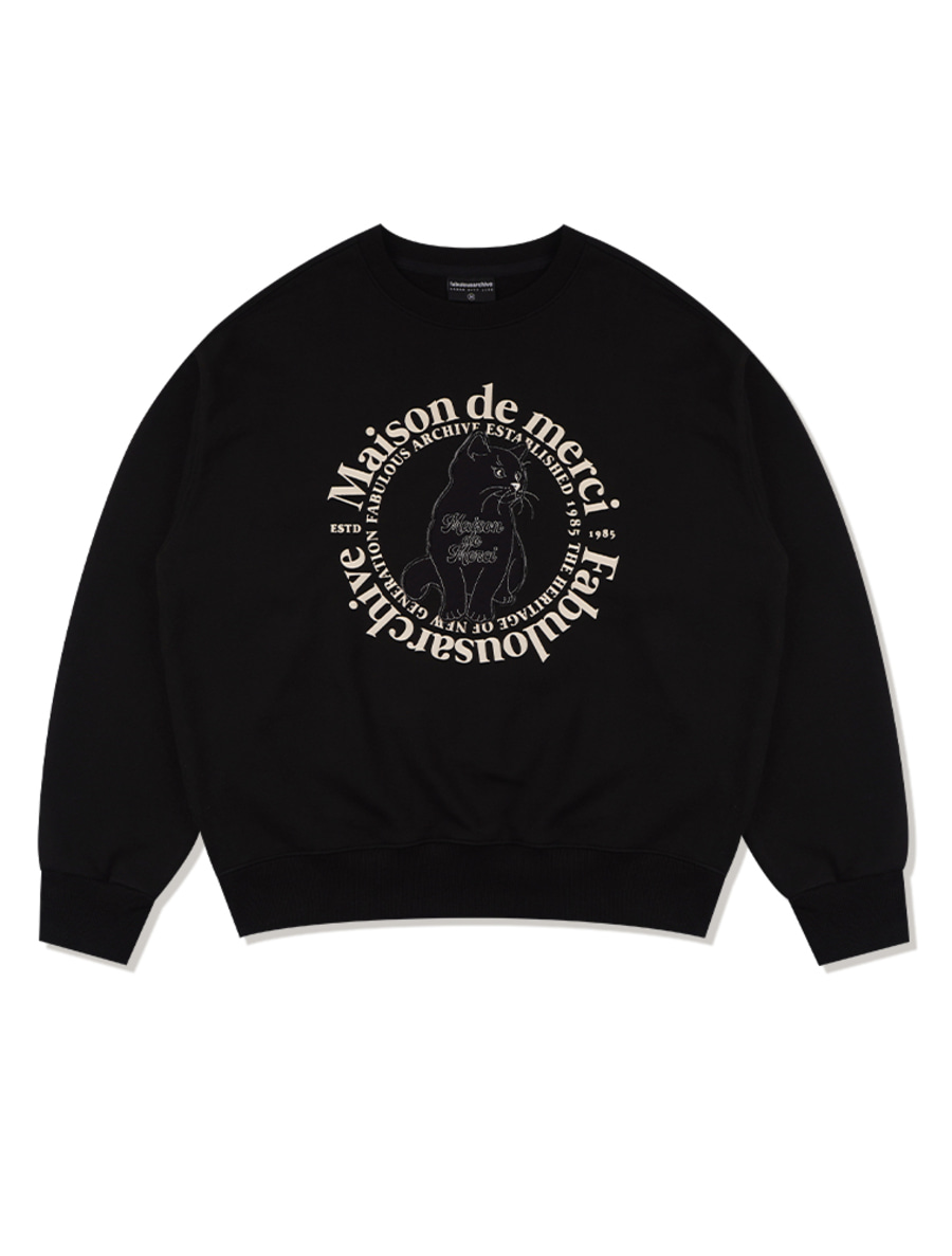 우먼즈 크롭 메종 캣패치 헤비테리 맨투맨 블랙(FCD3TS710W)