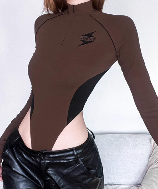 무료배송 브라운빈 하이넥 바디수트 (브라운) #스트릿 #빈티지