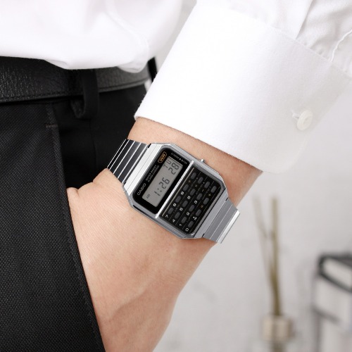 카시오 디지털 레트로 빈티지 계산기 메탈 손목시계 메탈 제라늄