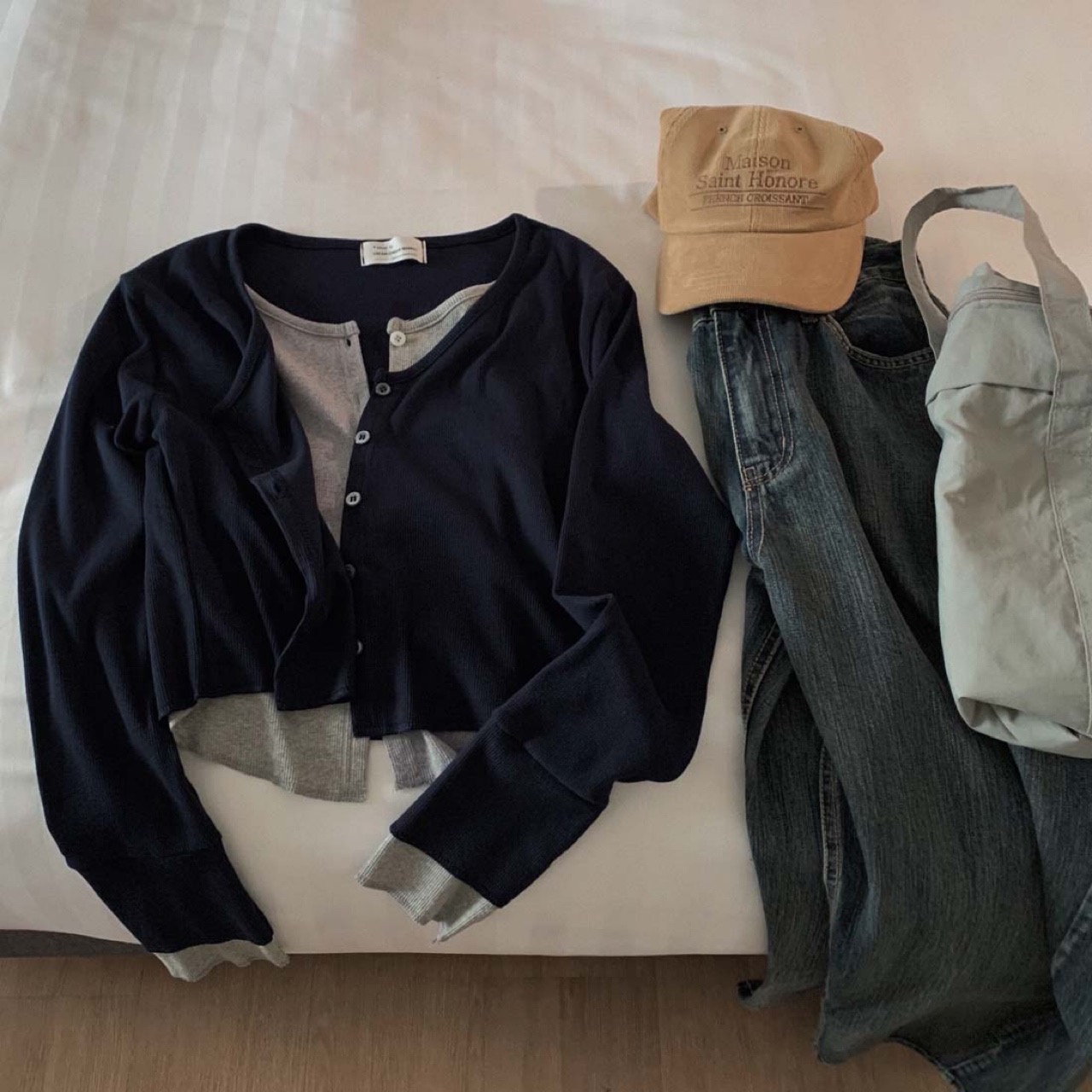 [1만장돌파🎉/일체형/그레이아이 당일출고 ] 자체제작 #크치Made 레이어드 골지 가디건, 니트 긴팔티 - t