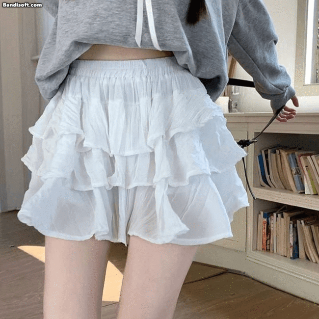 [여리핏/몸매보정] 밴딩 3단 캉캉 프릴 주름 치마 바지 스커트